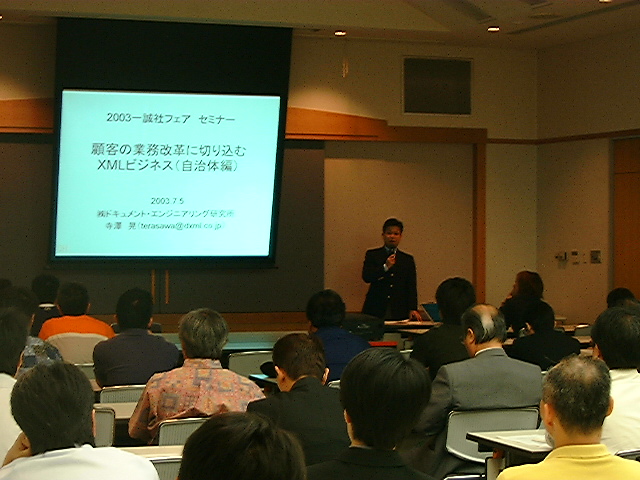 四国4県をサポートする印刷機材ディーラー「株式会社一誠社」の展示会におけるセミナー講師を担当いたしました。7月4〜5日の展示会で,のべ1200名の来場があるイベントとなり,四国における株式会社一誠社の営業力の強さに感服した次第です。今後XMLビジネスの構築を望む四国の印刷会社の皆様と共に,株式会社一誠社が中心となり,メディアフロンティアのご協力もいただきながら,四国におけるXMLプロジェクトを具体化させていきたいと考えます。